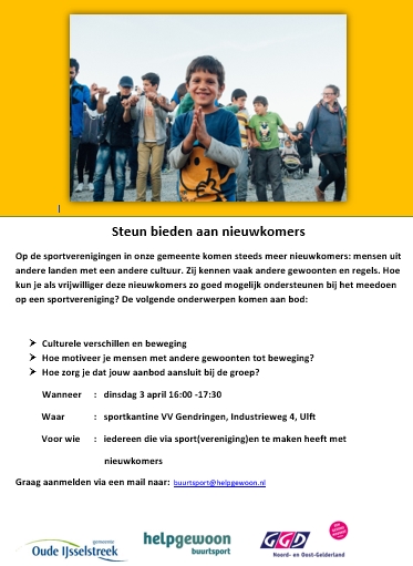 Op de sportverenigingen in onze gemeente komen steeds meer nieuwkomers: mensen uit andere landen met een andere cultuur. Zij kennen vaak andere gewoonten en regels. Hoe kun je als vrijwilliger deze nieuwkomers zo goed mogelijk ondersteunen bij het meedoen op een sportvereniging? De volgende onderwerpen komen aan bod: